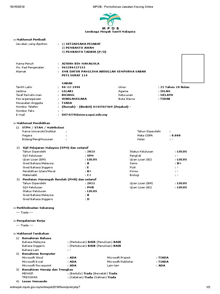 Mpob Permohonan Jawatan Kosong Online Pdf Pdf